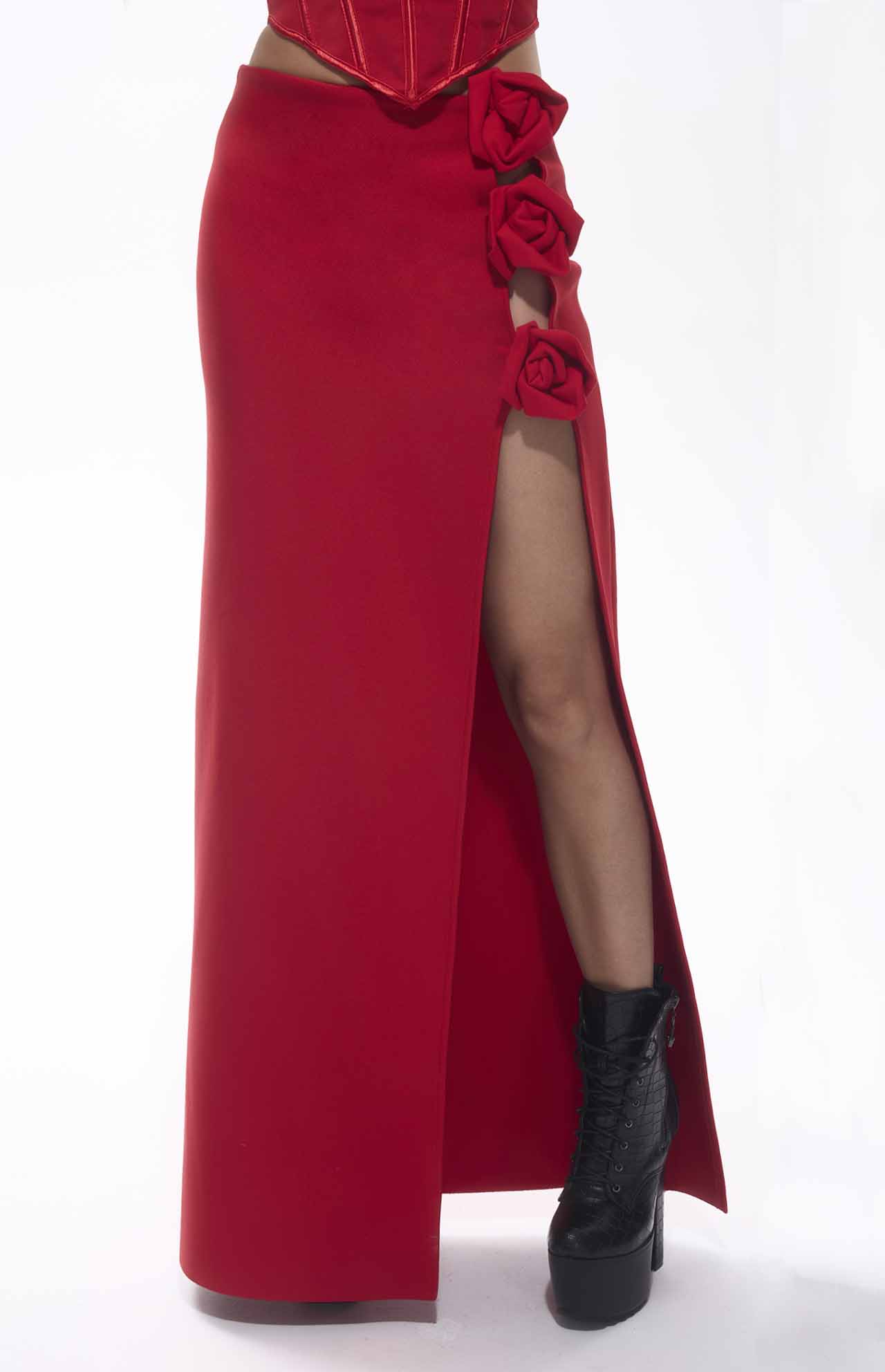 Unleash your inner showstopper with the Tita Bandage Flower Decor Skirt, a high-impact piece designed to turn heads. Crafted in vibrant red bandage fabric, this floor-length skirt hugs your curves while offering structure and support for a confident, sculpted fit.